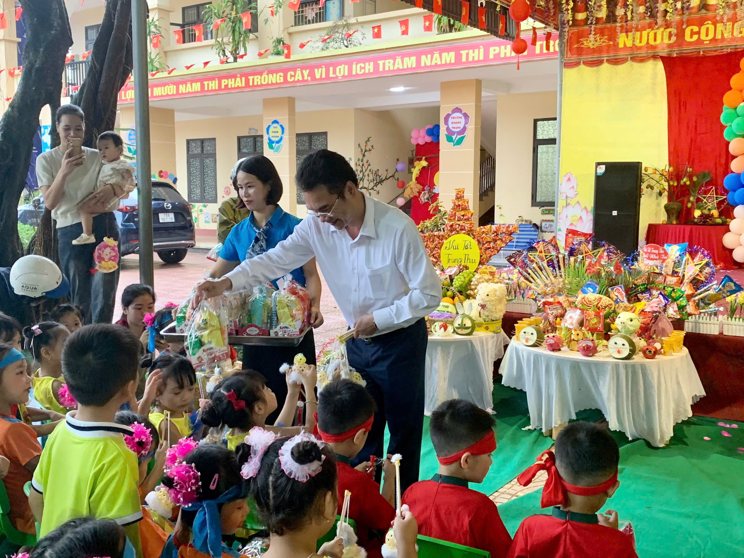 Trong niềm vui của của Tết Trung thu năm nay, các em nhỏ được xem các tiểu phẩm về sự tích chú Cuội, chị Hằng, được thưởng thức những tiết mục văn nghệ về chủ đề Tết Trung thu do cô và trò nhà trường thể hiện. Về dự và trao quà tại các nhà trường, các đồng chí lãnh đạo xã chúc các cháu thiếu nhi đón Tết Trung thu vui tươi, đầm ấm và an toàn; mong các cháu luôn mạnh khỏe, chăm ngoan, xứng đáng là con ngoan, trò giỏi, cháu ngoan Bác Hồ.