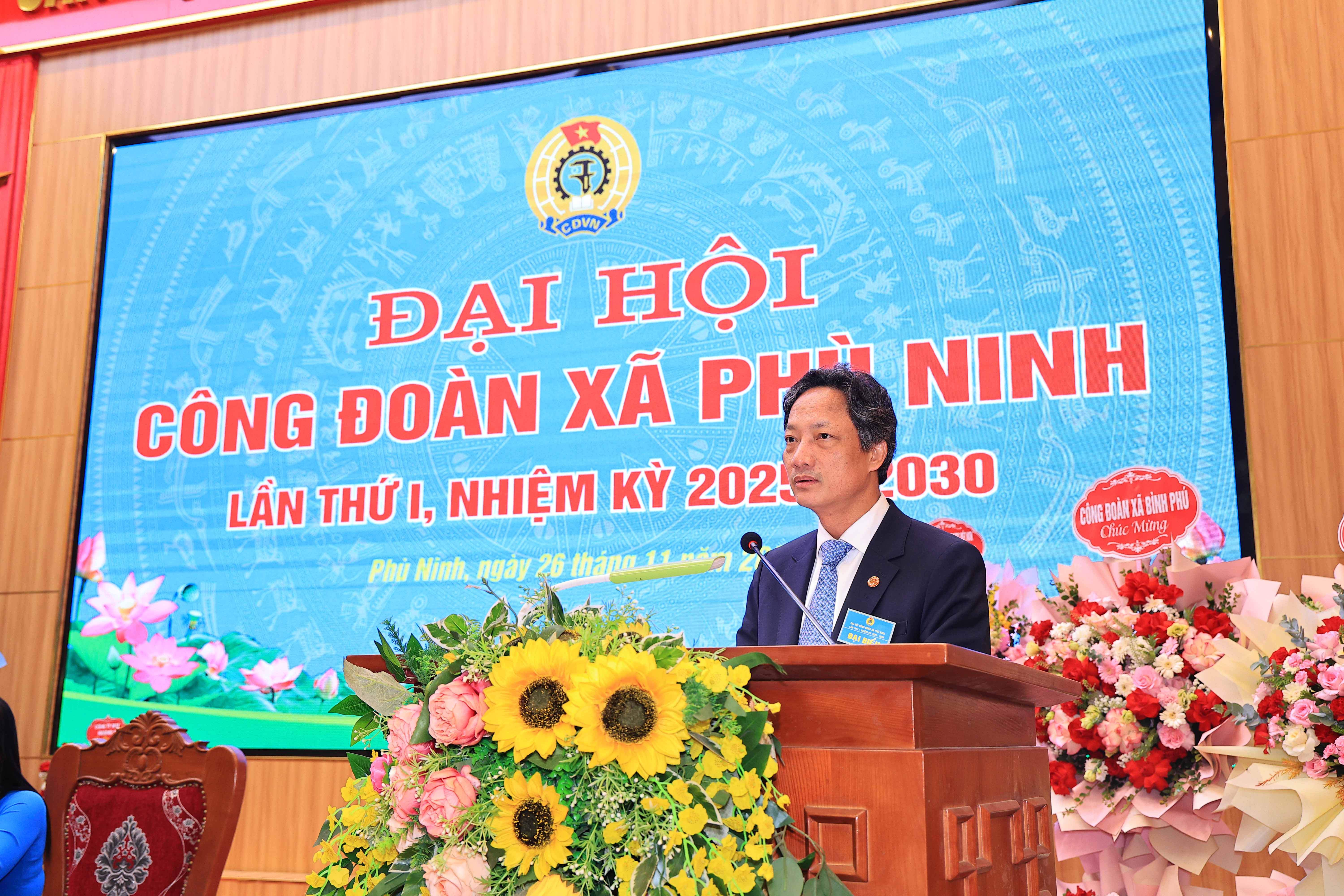 Sáng ngày 26/11/2025, Công đoàn xã Phù Ninh long trọng tổ chức Đại hội lần thứ I, nhiệm kỳ 2025 – 2030. Dự và chỉ đạo Đại hội về phía tỉnh Phú Thọ có đồng chí Khổng Sơn Thành - Phó Chủ tịch Liên đoàn lao động tỉnh; các đồng chí lãnh đạo các phòng, ban thuộc LĐLĐ tỉnh; xã Phù Ninh có đồng chí Ngô Đức Thịnh - Tỉnh uỷ viên, Bí thư Đảng uỷ, Chủ tịch HĐND xã; đồng chí Nguyễn Đức Tài - Phó Bí thư Đảng uỷ, Chủ tịch UBND xã; đồng chí Chu Đức Thắng - Phó Bí thư Thường trực Đảng uỷ xã; các đồng chí trong Ban thường vụ Đảng uỷ, lãnh đạo Uỷ ban MTTQ, các tổ chức chính trị - xã hội, trung tâm chính trị, lãnh đạo Văn phòng Đảng uỷ, HĐND, UBND, các phòng, đơn vị chuyên môn thuộc UBND xã, đại biểu lãnh đạo Công đoàn xã Bình Phú, đại diện các doanh nghiệp, công đoàn cơ sở và 100 đại biểu đại diện cho hơn 4.100 đoàn viên, người lao động trên địa bàn.