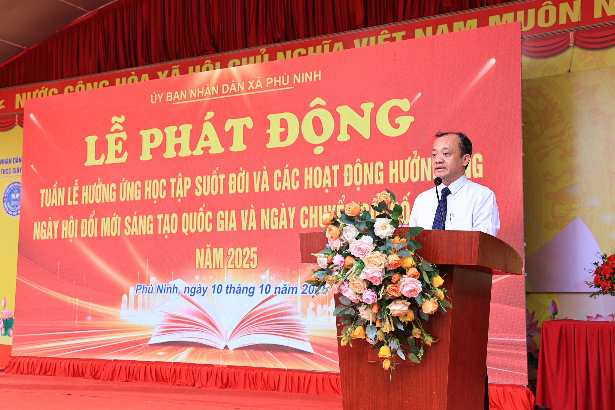 Ngày 10/10, UBND xã Phù Ninh tổ chức Lễ phát động Tuần lễ hưởng ứng học tập suốt đời năm 2025, hưởng ứng Ngày hội Đổi mới sáng tạo quốc gia và Ngày Chuyển đổi số quốc gia. Tới dự có đồng chí Nguyễn Đức Tài – Phó bí thư, Chủ tịch UBND xã; Đồng chí Lê Thành Sơn - Ủy viên BTV Đảng ủy, Phó chủ tịch HĐND xã; Đồng chí Bùi Tuấn Long - Ủy viên BTV Đảng ủy, Phó chủ tịch UBND xã; Các đồng chí Ủy viên Ban thường vụ Đảng ủy, Trưởng các phòng, ban, ngành đoàn thể của xã; Các trường học, khu dân cư, cơ quan, doanh nghiệp trên địa bàn. Ban giám hiệu, các thầy, cô giáo và hơn 1.000 học sinh trường THCS Giấy Phong Châu.