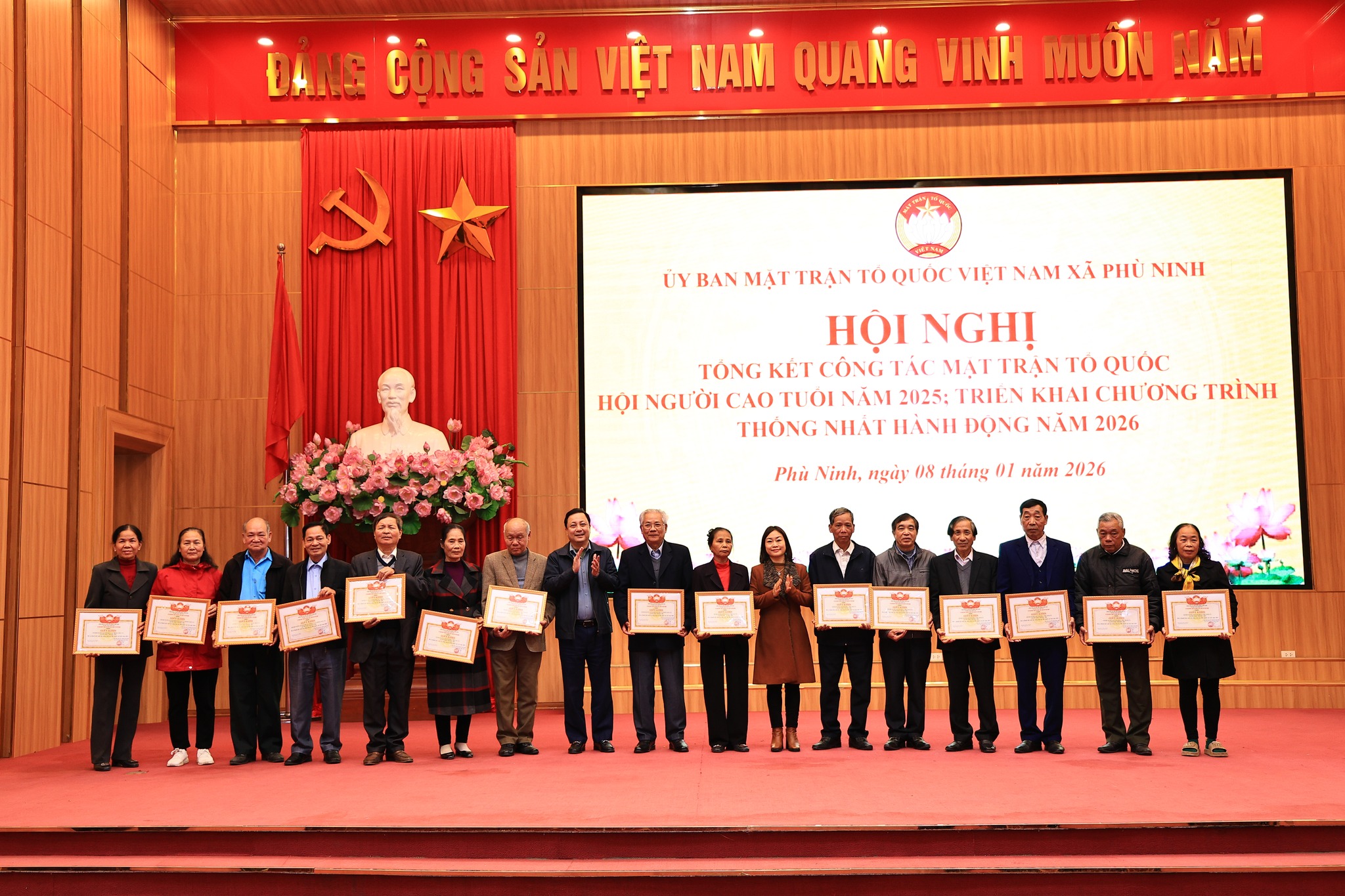 Nhân dịp này, Ủy ban MTTQ Việt Nam xã Phù Ninh đã tặng giấy khen cho 12 ban công tác mặt trận cơ sở và 15 chi hội Người cao tuổi vì đã có thành tích xuất sắc trong năm 2025./.