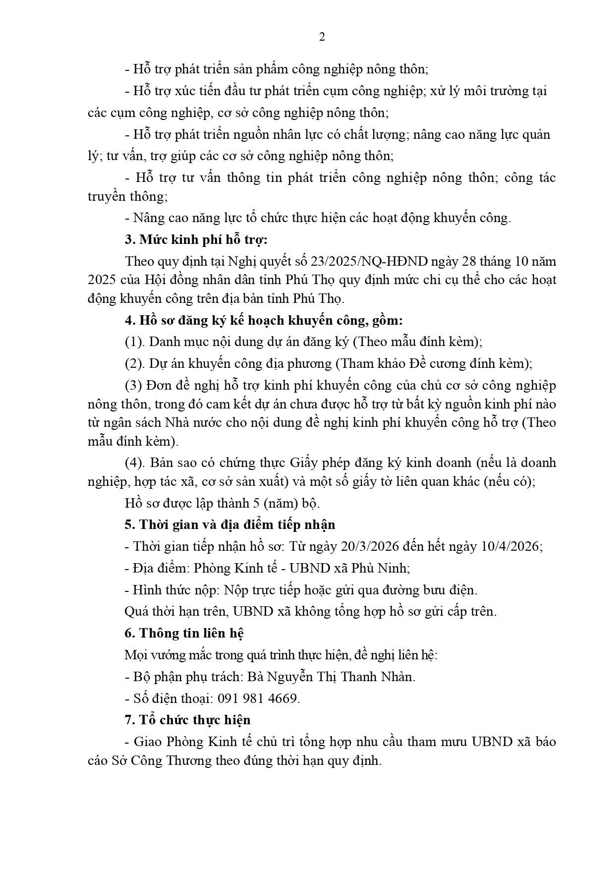 THÔNG BÁO Về việc đăng ký tham gia Chương trình khuyến công địa phương năm 2026