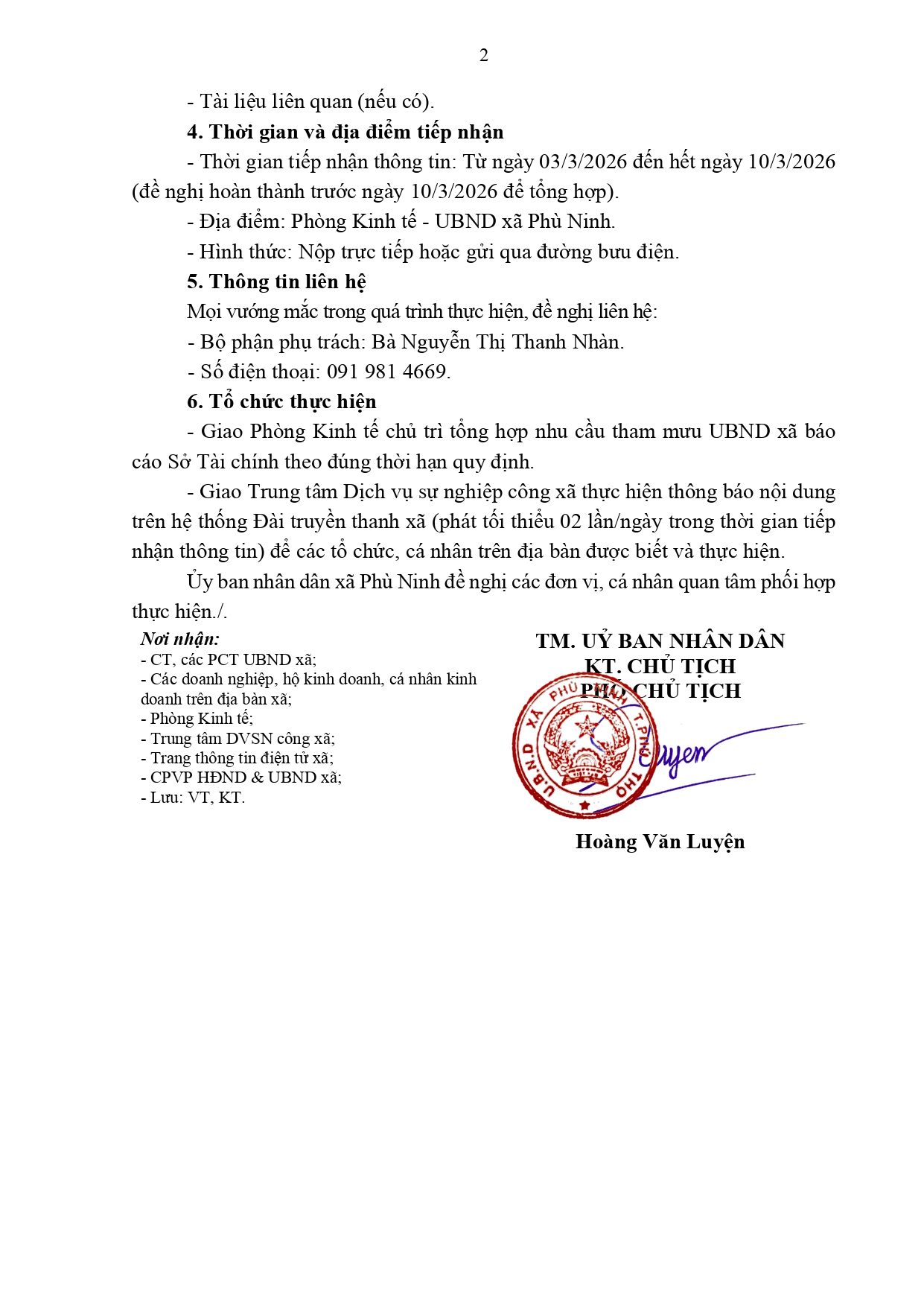 Thông báo về việc giao nhiệm vụ theo dõi sản xuất vụ Chiêm Xuân 2026 và đôn đốc kê khai chăn nuôi trên địa bàn xã Phù Ninh.
