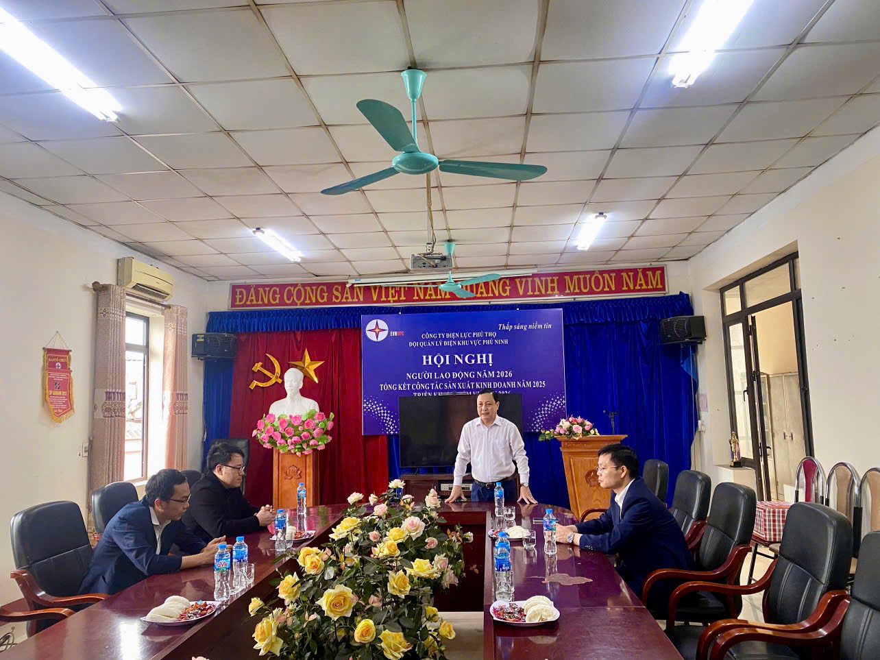 Tại Điện lực Phù Ninh, để đảm bảo cung ứng điện ổn định phục vụ nhân dân trong dịp Tết Nguyên đán, Điện lực đã tổ chức rà soát hệ thống lưới điện, chuẩn bị đầy đủ vật tư, thiết bị, hệ thống thông tin liên lạc và phương tiện đi lại; phân công trực đối với lãnh đạo, lực lượng trực vận hành, sửa chữa điện trực 24/24h trong các ngày Tết, sẵn sàng xử lý nhanh các tình huống sự cố phát sinh. Đồng chí Lê Thành Sơn - Ủy viên BTV, Phó chủ tịch HĐND xã đã ghi nhận, đánh giá cao kết quả Điện lực Phù Ninh đã đạt được trong năm qua. Tập thể cán bộ công nhân viên Điện lực đã chung sức, đồng lòng vượt qua khó khăn thách thức, thực hiện tốt các nhiệm vụ và đạt được những kết quả đáng khích lệ, nhất là đảm bảo cung ứng điện an toàn, ổn định. Đồng chí đề nghị Điện lực tiếp tục phát huy những kết quả đạt được, vận hành an toàn, ổn định lưới điện, chủ động phương án khi có sự cố bất ngờ xảy ra, đảm bảo cung cấp điện ổn định phục vụ nhân dân, nhất là trong dịp Tết Nguyên đán.
