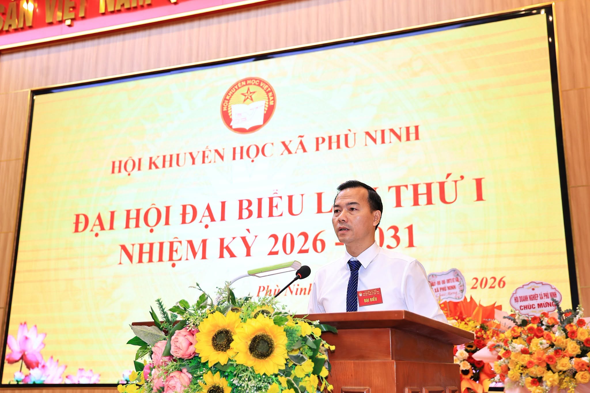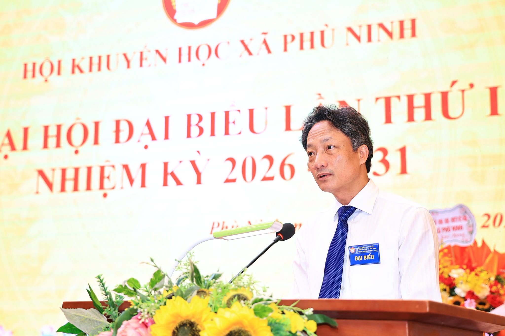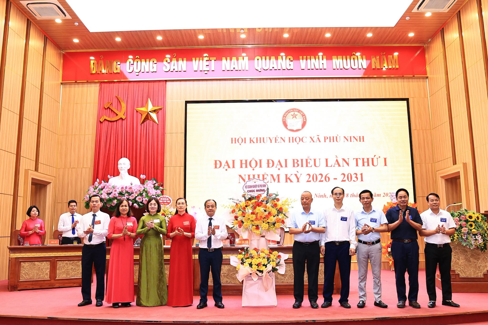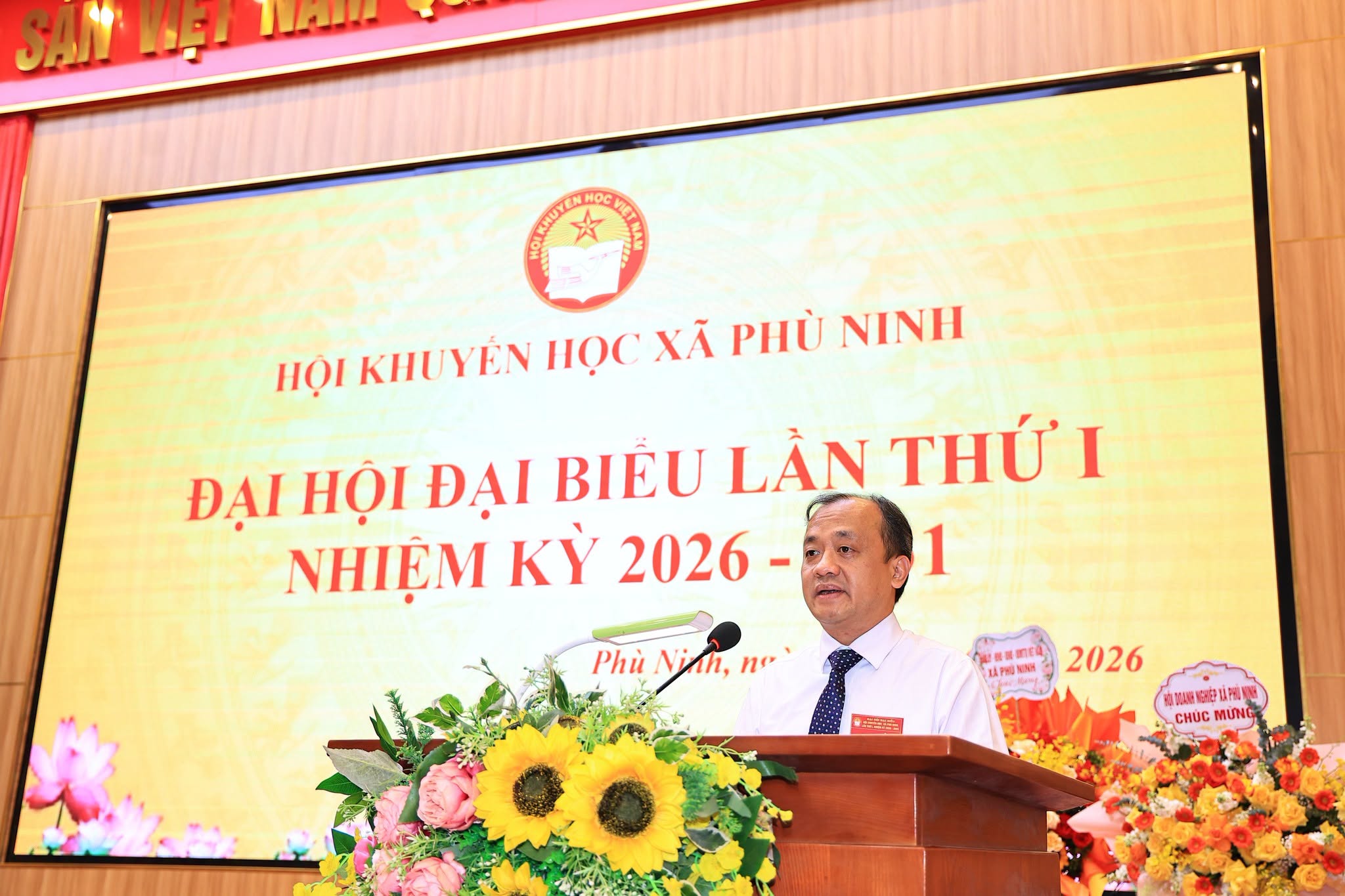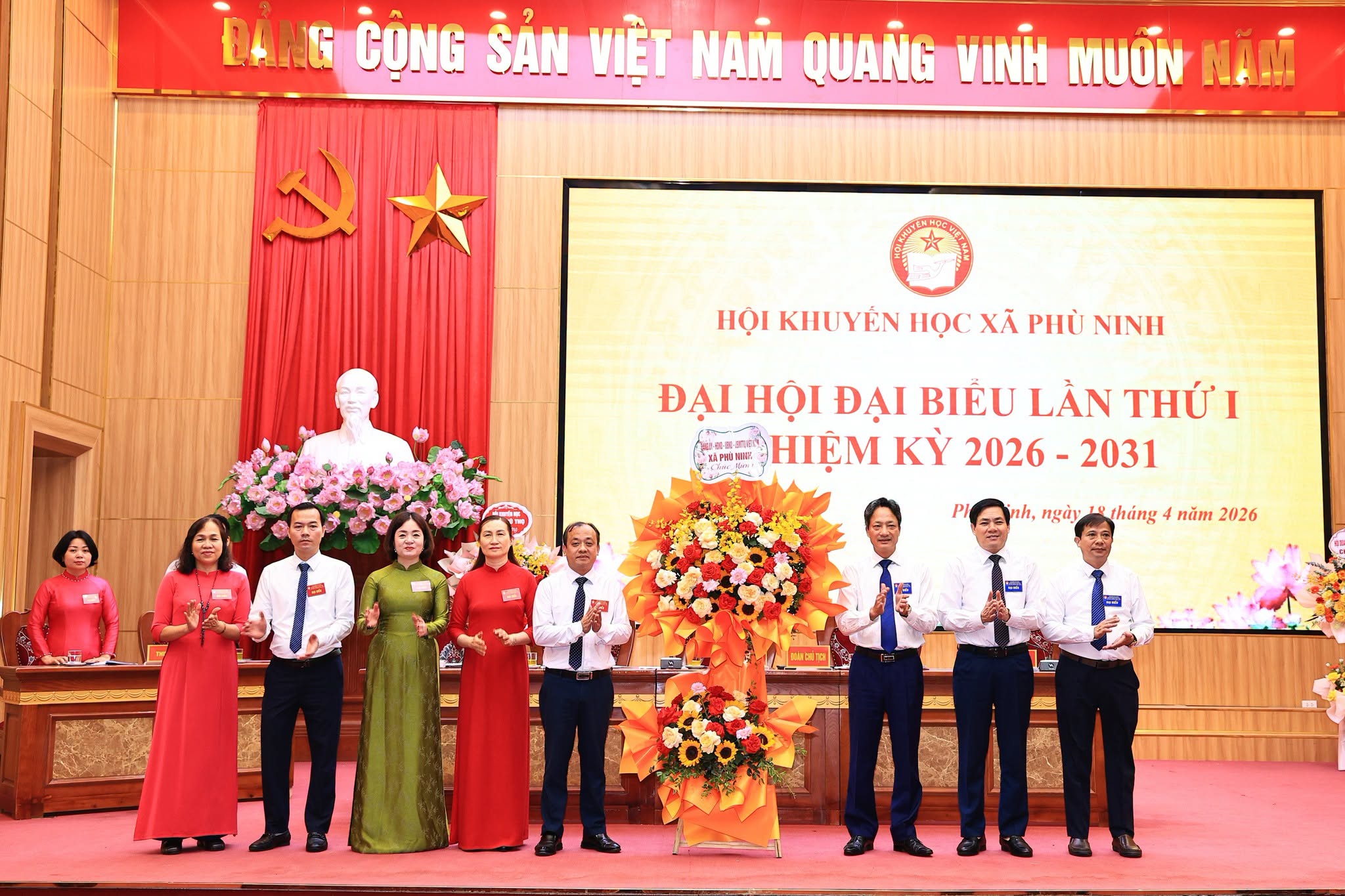 Tặng hoa chúc mừng và phát biểu tại Đại hội, Đồng chí Ngô Đức Thịnh - TUV, Bí thư Đảng ủy, Chủ tịch HĐND xã và Nhà giáo ưu tú Nguyễn Thành Chung - Phó chủ tịch Hội khuyến học tỉnh đã biểu dương những kết quả mà Hội khuyến học xã Phù Ninh đã đạt được trong nhiệm kỳ qua; Đồng thời đề nghị Hội khuyến học xã tiếp tục đổi mới nội dung, phương thức hoạt động theo tinh thần Nghị quyết 71-NQ/TW; Đẩy mạnh xã hội hóa công tác khuyến học, khuyến tài; quan tâm hơn nữa đến học sinh nghèo vượt khó, học sinh có thành tích xuất sắc, góp phần xây dựng xã hội học tập bền vững tại địa phương. Quản lý và sử dụng Quỹ Khuyến học thật khoa học, công khai, minh bạch, đúng mục đích. Đồng chí khẳng định lãnh đạo xã sẽ luôn đồng hành, lãnh đạo, tạo điều kiện thuận lợi để Hội Khuyến học hoạt động hiệu quả; đồng thời đề nghị chính quyền, Mặt trận Tổ quốc, các đoàn thể, các nhà trường, các tổ chức, doanh nghiệp, các nhà hảo tâm và toàn thể Nhân dân tiếp tục chung tay, góp sức cho sự nghiệp khuyến học, khuyến tài của xã nhà. Đồng chí tin tưởng rằng, với truyền thống hiếu học của quê hương Phù Ninh, cùng tinh thần đoàn kết, trách nhiệm của đội ngũ cán bộ Hội khuyến học Phù Ninh nhiệm kỳ 2026 - 2031 sẽ hoàn thành xuất sắc nhiệm vụ trong nhiệm kỳ mới.
