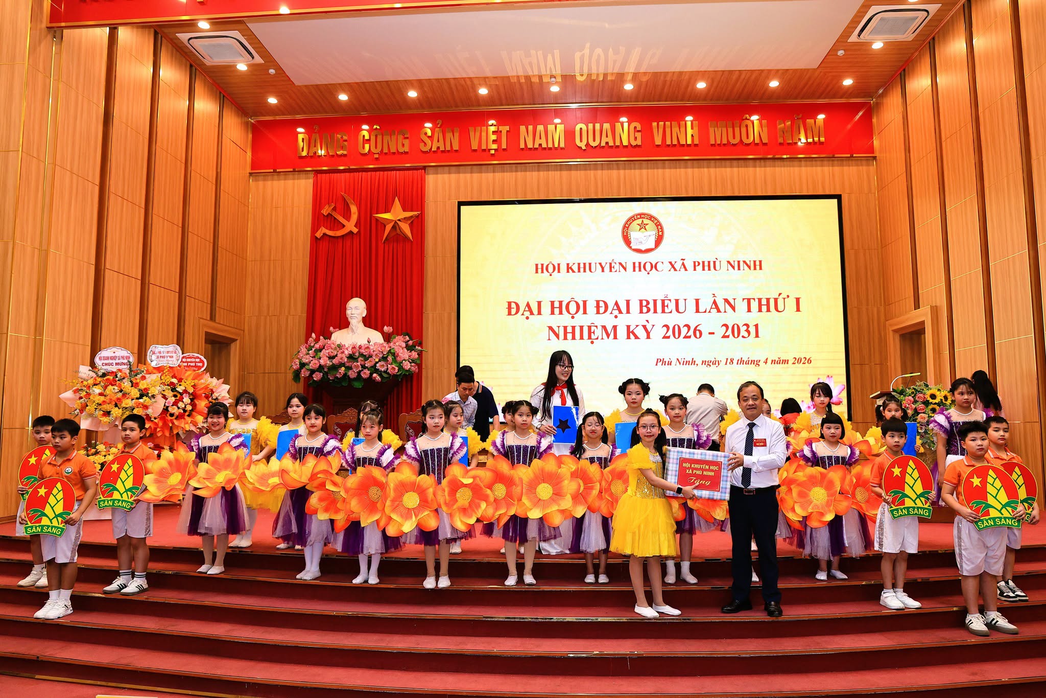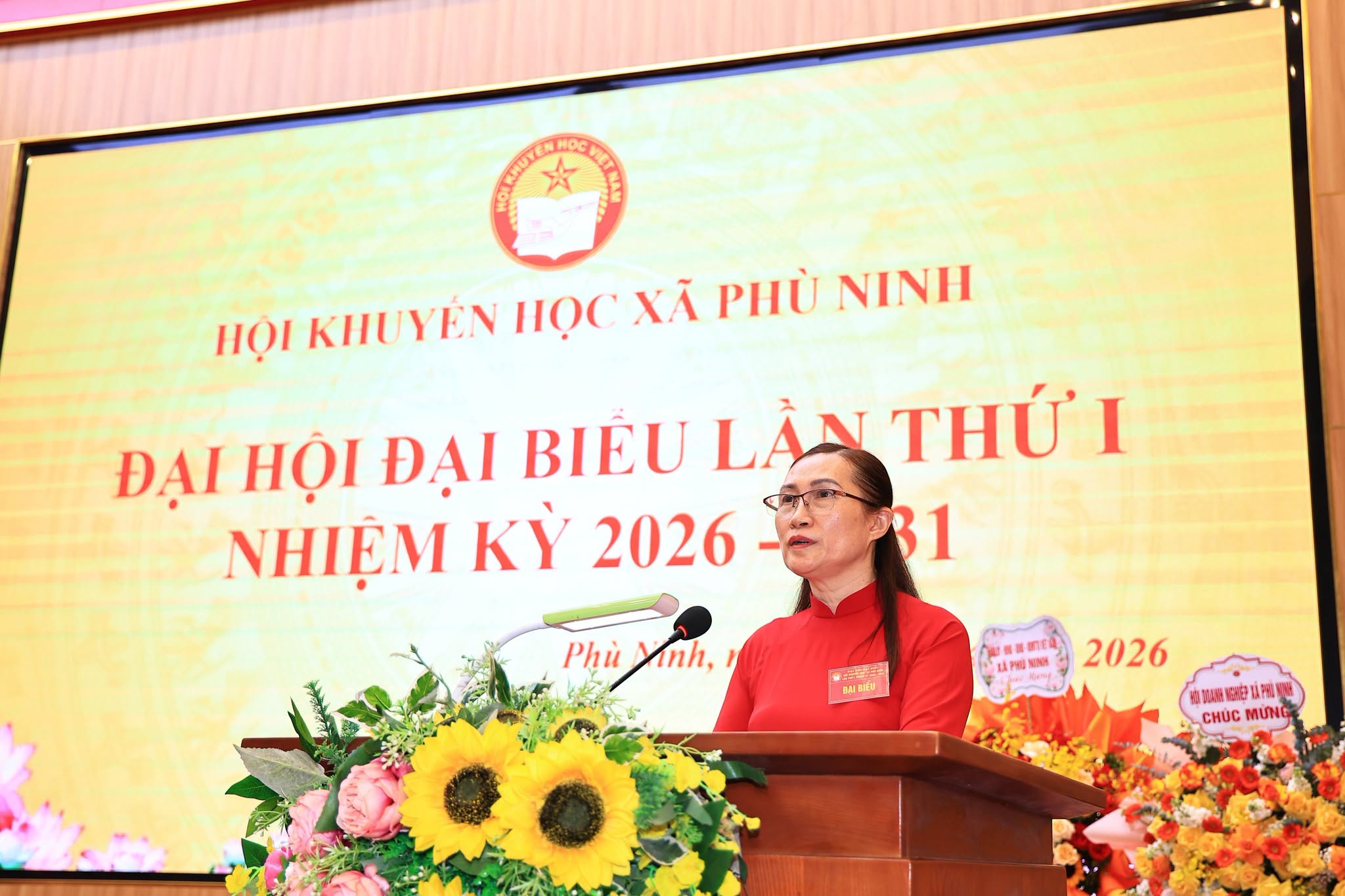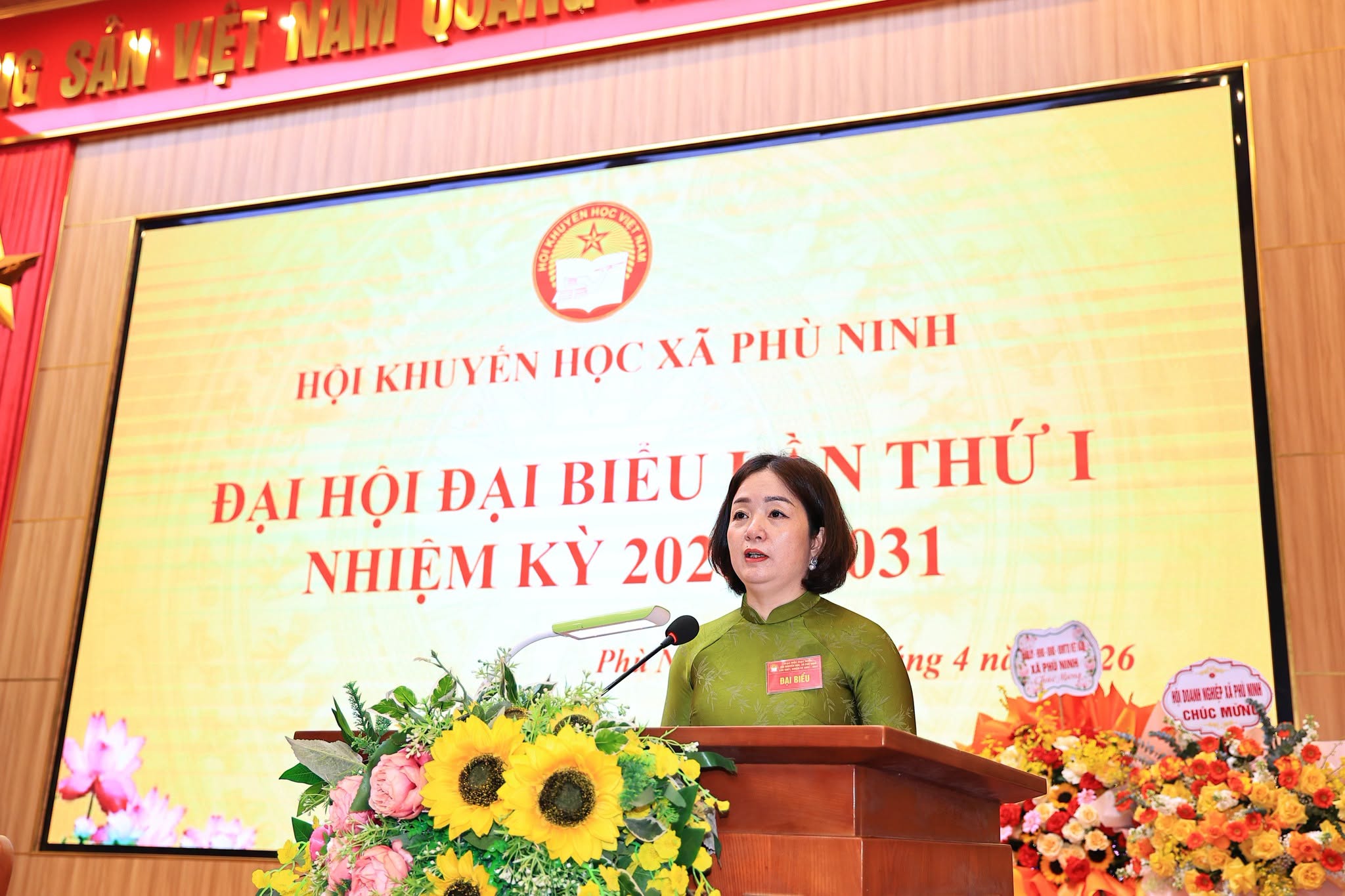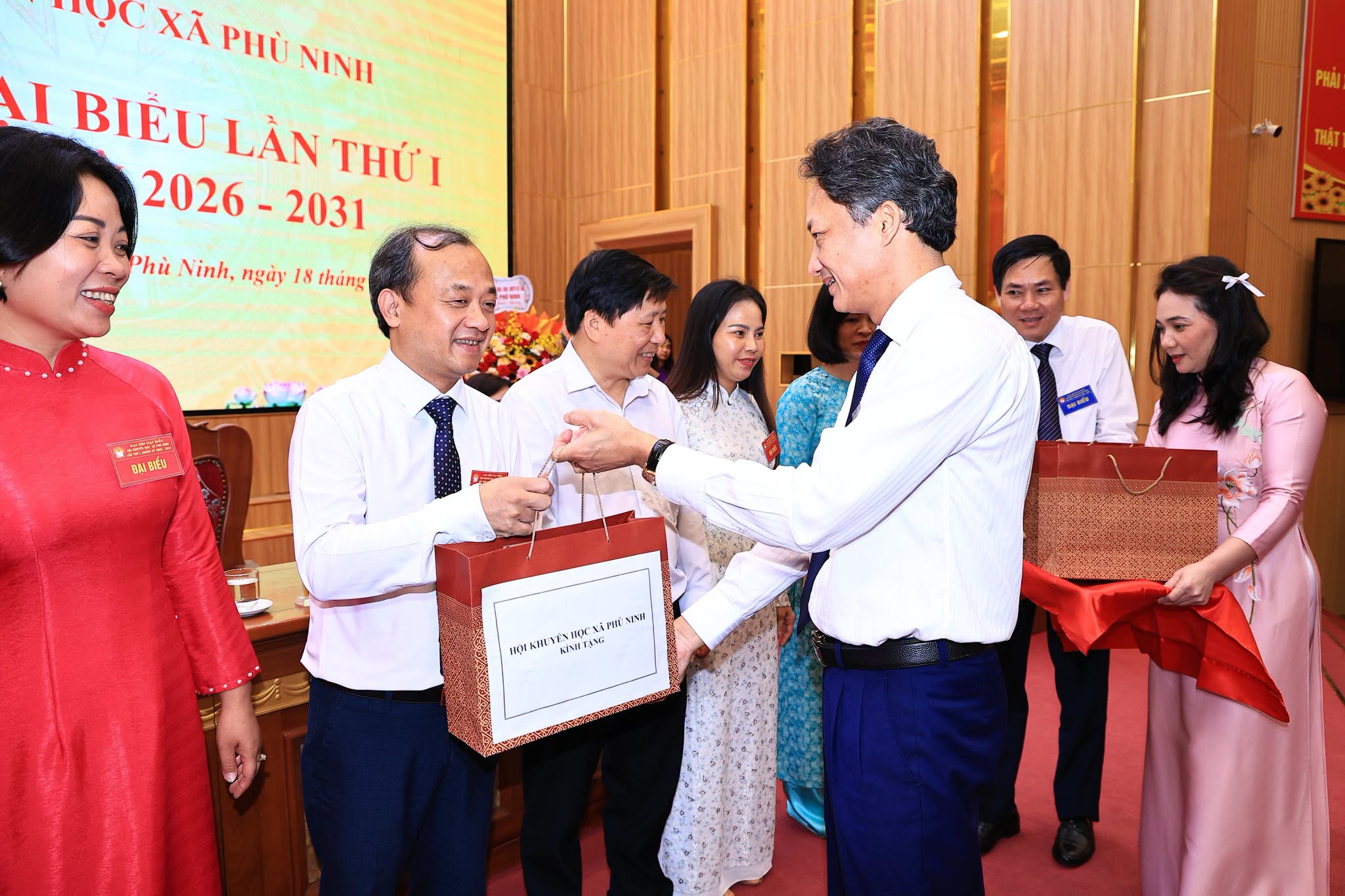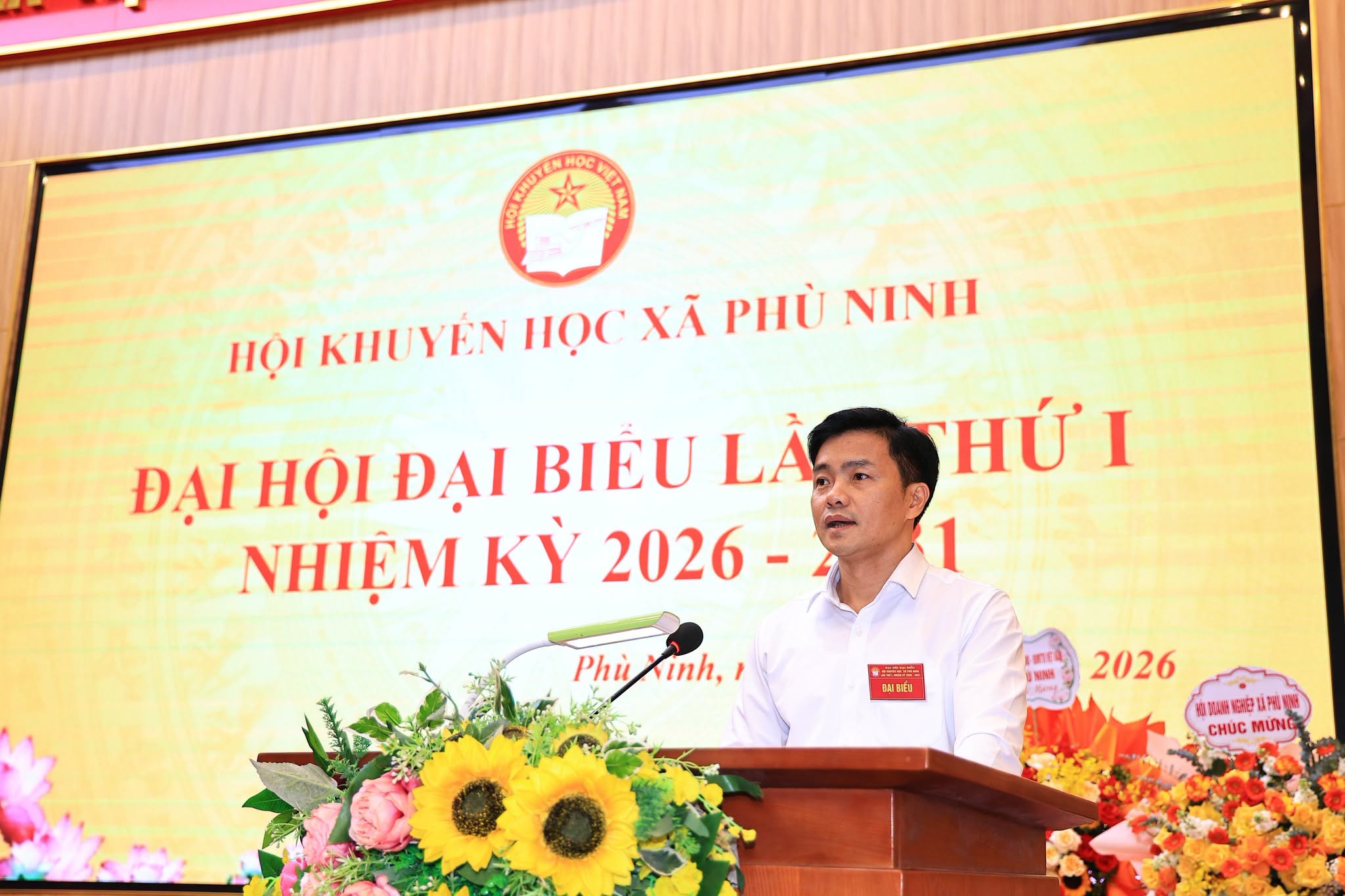 Tặng hoa chúc mừng và phát biểu tại Đại hội, Đồng chí Ngô Đức Thịnh - TUV, Bí thư Đảng ủy, Chủ tịch HĐND xã và Nhà giáo ưu tú Nguyễn Thành Chung - Phó chủ tịch Hội khuyến học tỉnh đã biểu dương những kết quả mà Hội khuyến học xã Phù Ninh đã đạt được trong nhiệm kỳ qua; Đồng thời đề nghị Hội khuyến học xã tiếp tục đổi mới nội dung, phương thức hoạt động theo tinh thần Nghị quyết 71-NQ/TW; Đẩy mạnh xã hội hóa công tác khuyến học, khuyến tài; quan tâm hơn nữa đến học sinh nghèo vượt khó, học sinh có thành tích xuất sắc, góp phần xây dựng xã hội học tập bền vững tại địa phương. Quản lý và sử dụng Quỹ Khuyến học thật khoa học, công khai, minh bạch, đúng mục đích. Đồng chí khẳng định lãnh đạo xã sẽ luôn đồng hành, lãnh đạo, tạo điều kiện thuận lợi để Hội Khuyến học hoạt động hiệu quả; đồng thời đề nghị chính quyền, Mặt trận Tổ quốc, các đoàn thể, các nhà trường, các tổ chức, doanh nghiệp, các nhà hảo tâm và toàn thể Nhân dân tiếp tục chung tay, góp sức cho sự nghiệp khuyến học, khuyến tài của xã nhà. Đồng chí tin tưởng rằng, với truyền thống hiếu học của quê hương Phù Ninh, cùng tinh thần đoàn kết, trách nhiệm của đội ngũ cán bộ Hội khuyến học Phù Ninh nhiệm kỳ 2026 - 2031 sẽ hoàn thành xuất sắc nhiệm vụ trong nhiệm kỳ mới.