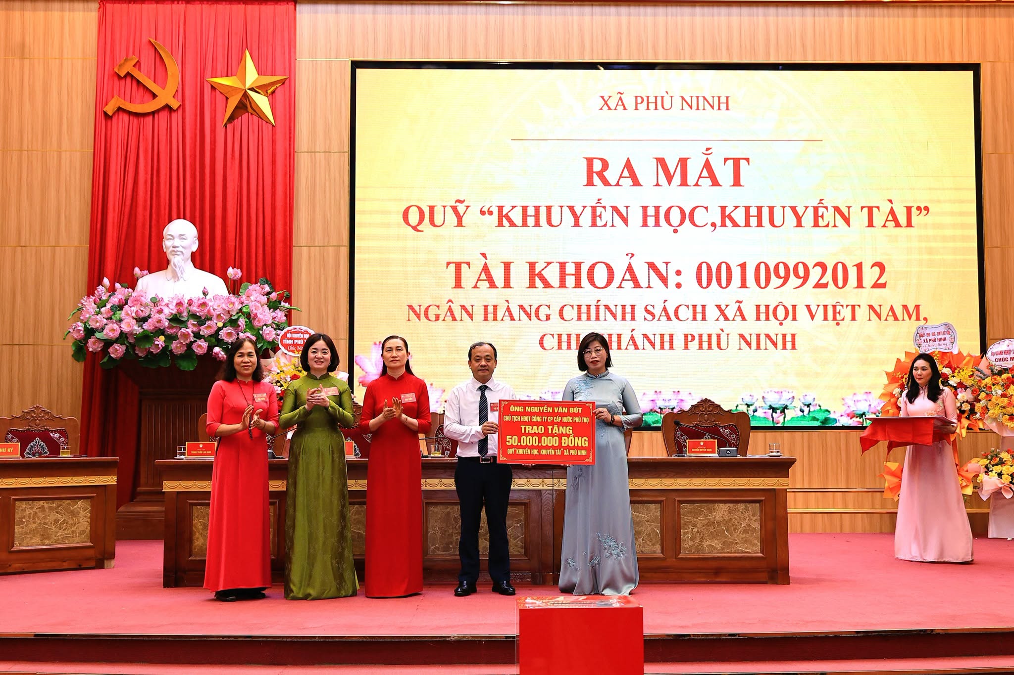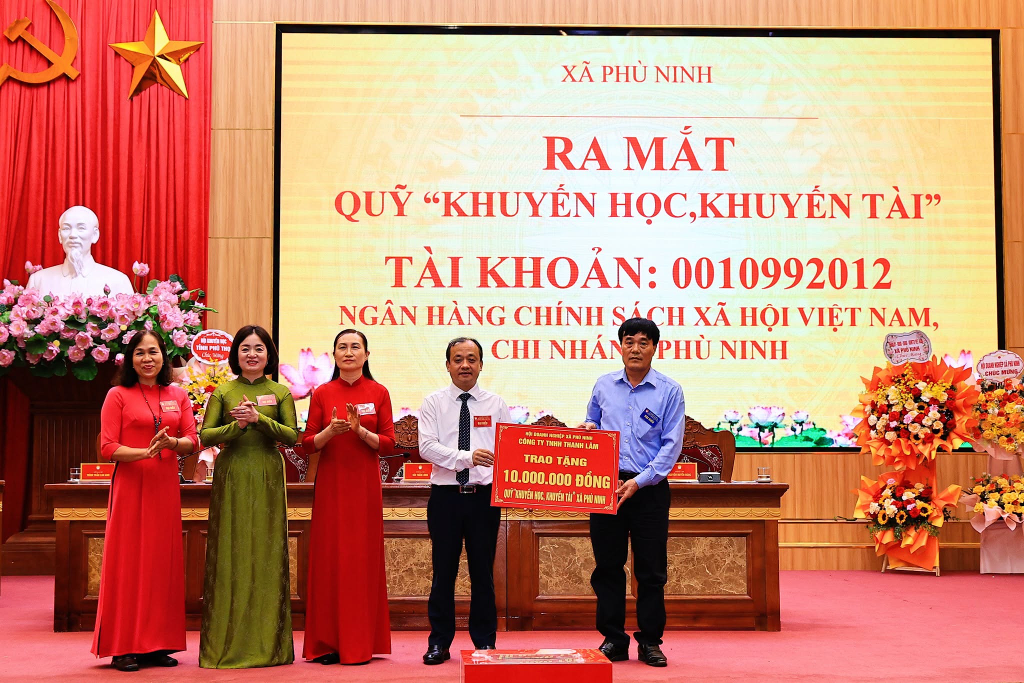 Nhân dịp này, Hội khuyến học xã đã công bố quyết định và ra mắt Quỹ khuyến học, khuyến tài xã Phù Ninh. Tính đến thời điểm ra mắt, Quỹ khuyến học, khuyến tài xã Phù Ninh đã tiếp nhận ủng hộ và cam kết tài trợ của các đồng chí lãnh đạo xã Phù Ninh; Các cơ quan, đơn vị, tổ chức, doanh nghiệp, các nhà hảo tâm với tổng số tiền gần 250 triệu đồng. Việc huy động và sử dụng hiệu quả nguồn quỹ sẽ đẩy mạnh phong trào khuyến học, khuyến tài, xây dựng xã hội học tập, phát triển giáo dục - đào tạo, xây dựng quê hương Phù Ninh ngày càng phát triển./..