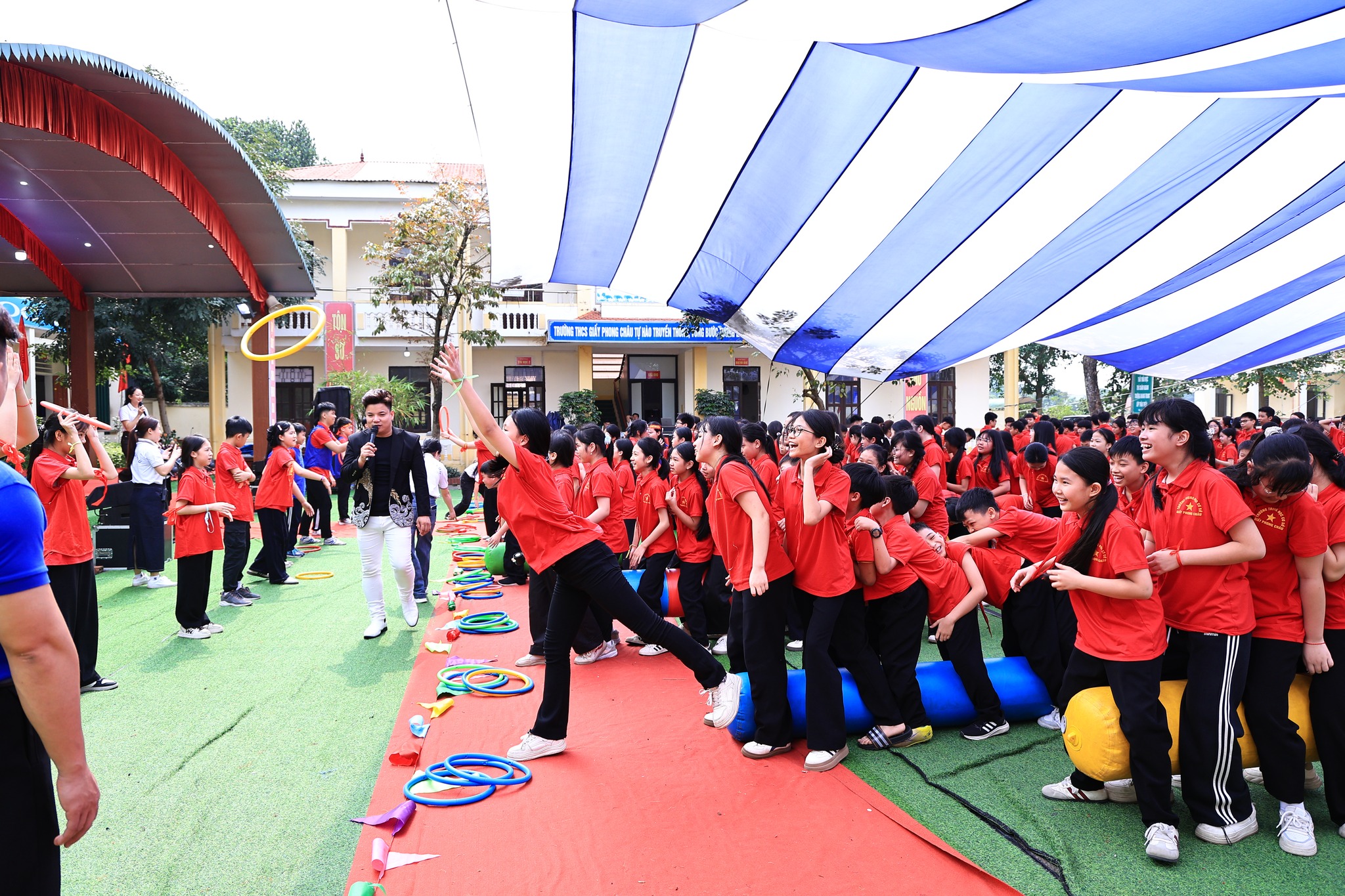 Điểm nhấn của ngày hội là hoạt động ngoại khóa TeamBuilding, các em học sinh được hòa mình vào hàng loạt hoạt động kỹ năng tập thể. Những hoạt động này không chỉ tạo sân chơi bổ ích, tăng cường tinh thần đoàn kết mà còn giúp các em phát huy khả năng sáng tạo, tư duy công nghệ và kỹ năng làm việc tập thể. Qua đó, ngày hội thực sự trở thành dịp để học sinh Trường THCS Giấy Phong Châu thể hiện bản lĩnh, trí tuệ và sức trẻ của mình.