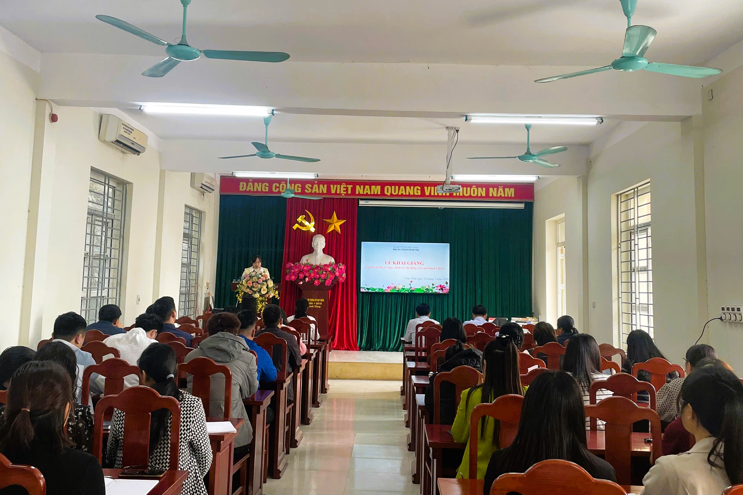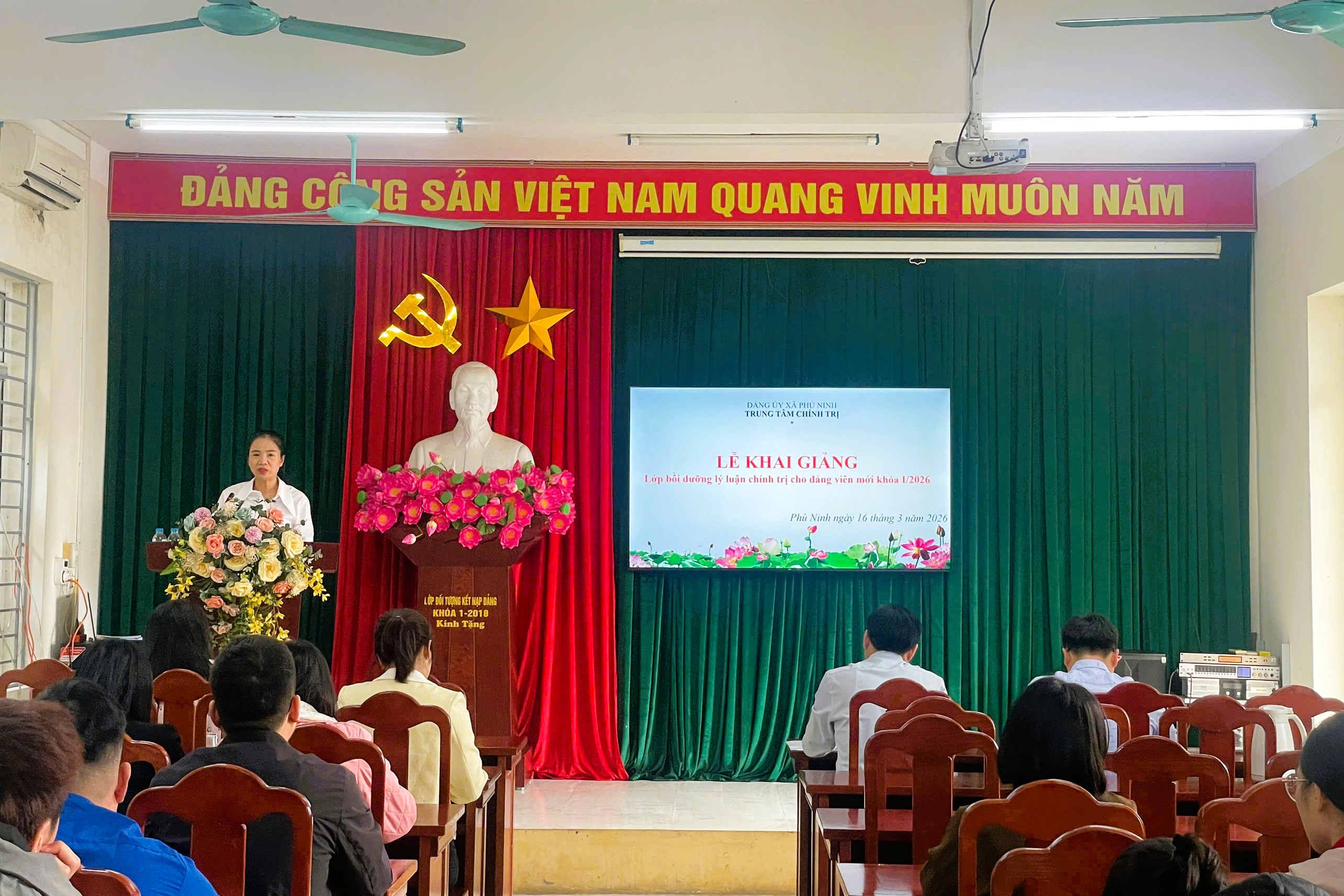 Sáng ngày 16/3/2026, tại Trung tâm Chính trị xã Phù Ninh đã tổ chức Lễ khai giảng lớp Bồi dưỡng lý luận chính trị dành cho đảng viên mới khoá I năm 2026. Đến dự Lễ khai giảng có đồng chí Chu Đức Thắng - Phó bí thư Thường trực Đảng uỷ xã Phù Ninh; Đại biểu xã Phú Mỹ có đồng chí Phạm Hoàng Tuấn - UVBTV, Trưởng ban xây dựng Đảng; Các đồng chí Lãnh đạo Văn phòng Đảng uỷ xã Phù Ninh, Trung tâm chính trị xã và 46 đảng viên dự bị thuộc 5 đảng bộ các xã: Phù Ninh, Phú Mỹ, Bình Phú, Dân Chủ, Trạm Thản.