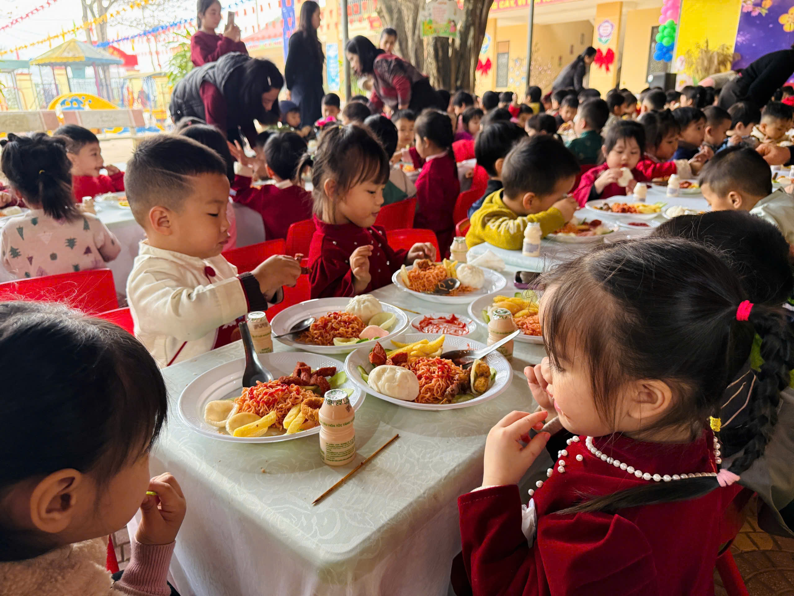 Trong khuân khổ chương trình, các bé được trực tiếp gói bánh chưng – những hình ảnh quen thuộc gắn liền với ngày Tết cổ truyền của dân tộc. Qua từng động tác, từng chiếc lá dong, hạt gạo nếp, các bé dần cảm nhận được giá trị của lao động, hiểu rằng để có một chiếc bánh chưng xanh là cả quá trình chuẩn bị công phu, chứa đựng tình cảm gia đình và tinh thần sum vầy. Đặc biệt, các bé và phụ huynh được tham quan trải nghiệm văn hóa, ẩm thực của 3 miền tại các gian hàng và thưởng thức tiệc buffet phong phú, bảo đảm an toàn vệ sinh thực phẩm và đầy đủ dinh dưỡng.