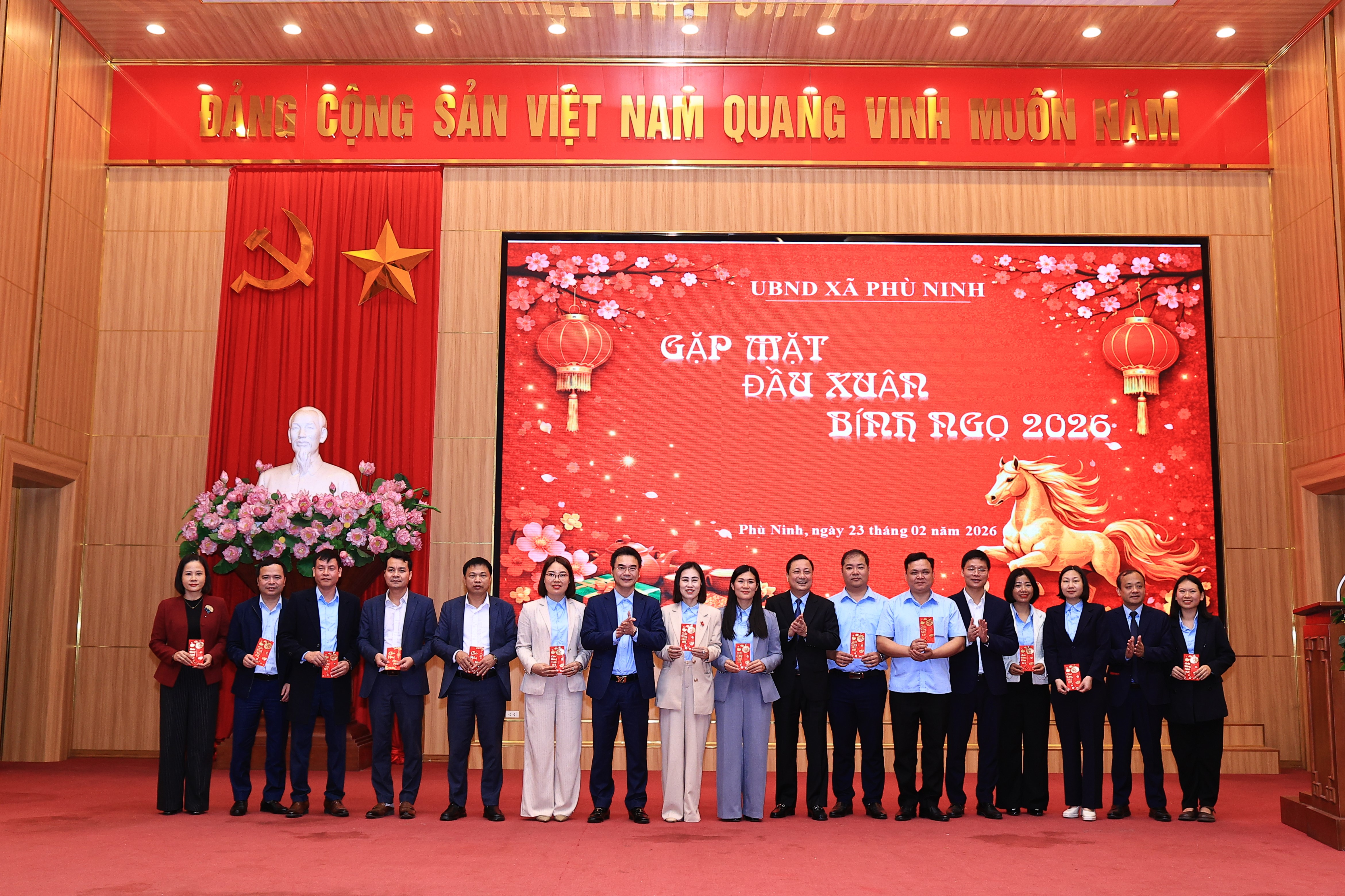 Trong không khí hân hoan, phấn khởi của những ngày đầu năm mới xuân Bính Ngọ 2026, sáng ngày 23/02/2026 (tức ngày mùng 7 tháng Giêng năm Bính Ngọ), UBND xã Phù Ninh đã tổ chức chương trình gặp mặt đầu xuân và triển khai những nhiệm vụ trọng tâm sau kỳ nghỉ tết. Dự gặp mặt có đồng chí Nguyễn Đức Tài - Phó bí thư, Chủ tịch UBND xã; Đồng chí Lê Thành Sơn - Ủy viên BTV, Phó chủ tịch HĐND xã; Đồng chí Bùi Tuấn Long - Ủy viên BTV, Phó chủ tịch UBND xã; Đồng chí Hoàng Văn Luyện - Ủy viên BTV, Phó chủ tịch UBND xã; Lãnh đạo, cán bộ công chức, viên chức, người lao động cơ quan UBND xã.