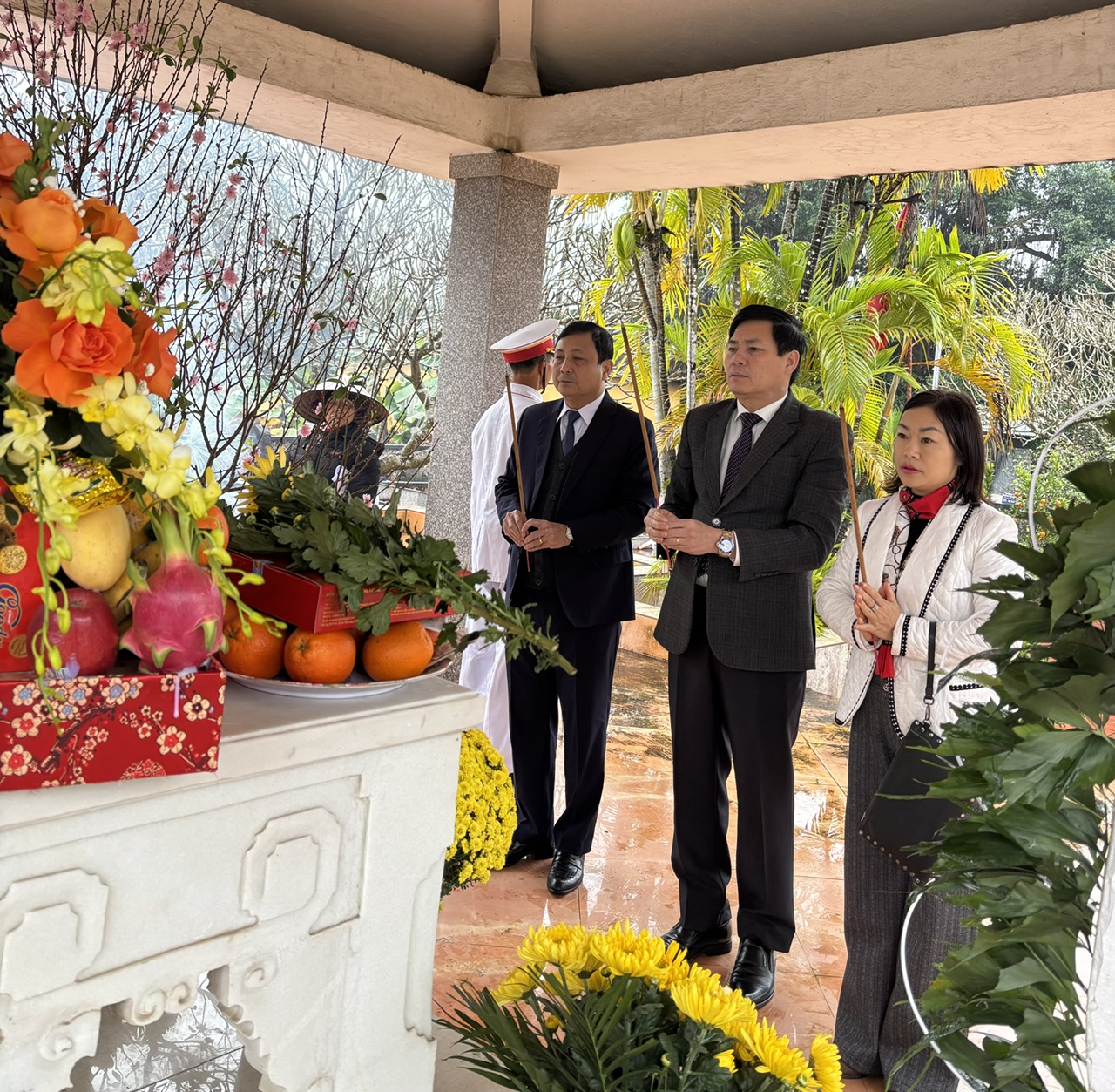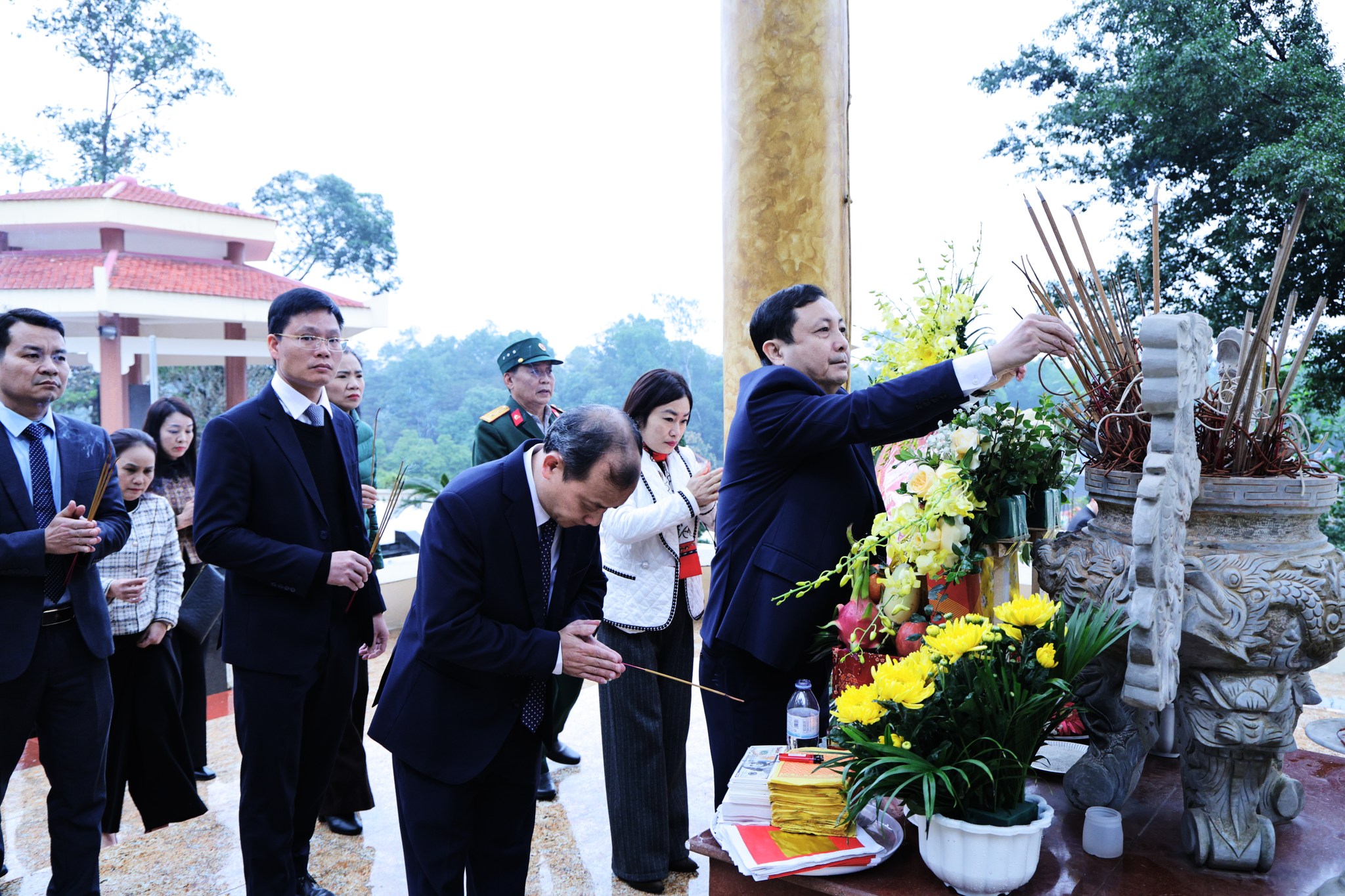 Đoàn do đồng chí Nguyễn Đức Tài - Phó Bí thư Đảng ủy, Chủ tịch UBND xã làm trưởng đoàn đã đến dâng hương tại nghĩa trang liệt sỹ Thị trấn Phong Châu (cũ). Cùng đi có đồng chí Hoàng Minh Phú - Ủy viên BTV Đảng ủy, Chủ nhiệm UBKT đảng ủy; Lãnh đạo phòng VH-XH, Văn phòng HĐND&UBND, Trung tâm phục vụ hành chính công và Ủy ban MTTQ xã.