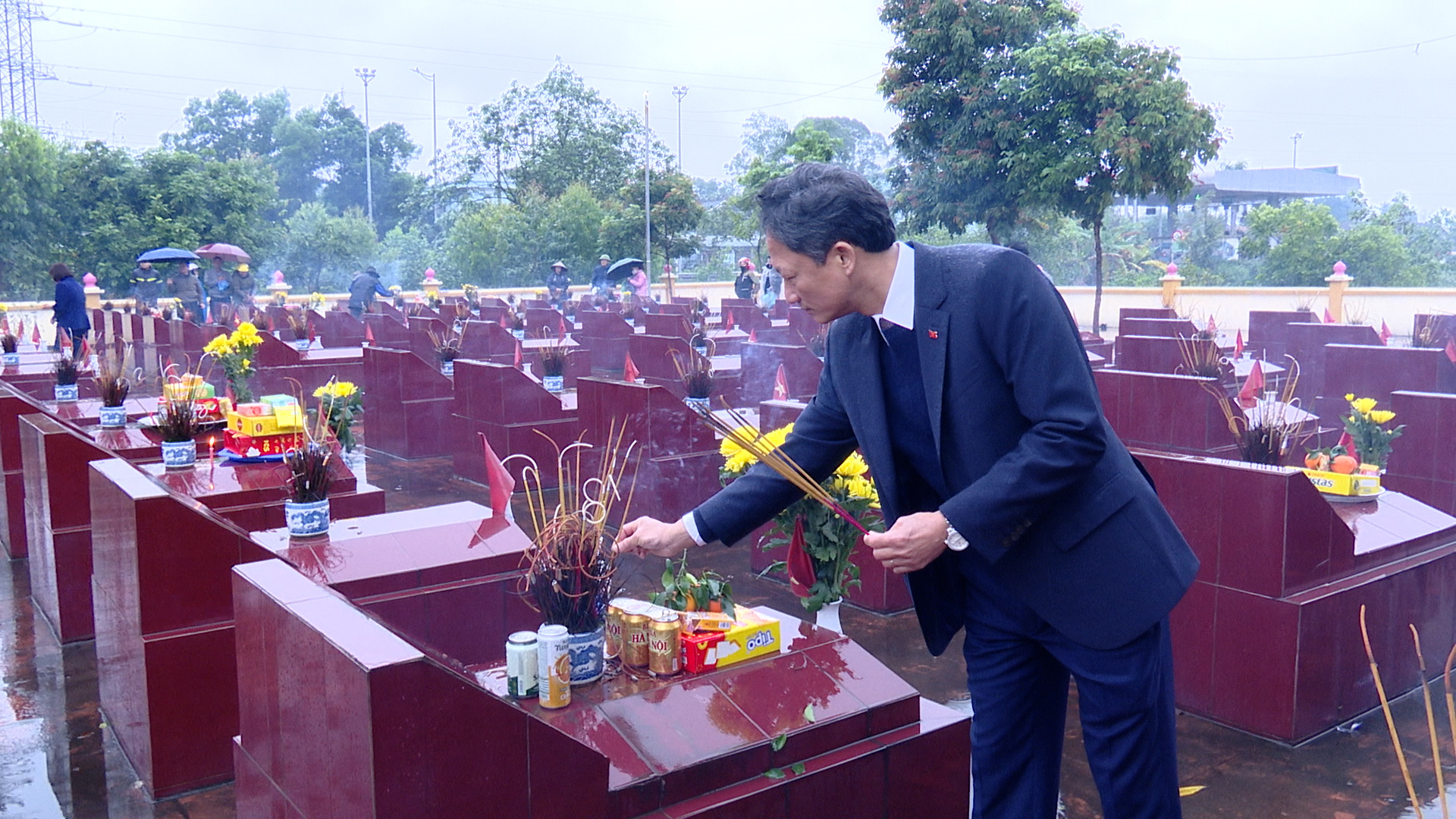 Đoàn do đồng chí Bùi Tuấn Long - Ủy viên BTV, Phó chủ tịch UBND xa làm trưởng đoàn đã đến dâng hương tại nghĩa trang liệt sỹ xã Phú Lộc(cũ). Cùng đi có đồng chí Nguyễn Văn Bàng - Ủy viên BTV, Chủ tịch Ủy ban MTTQ xã; Lãnh đạo Trung tâm Chính trị, Ban Xây dựng Đảng và Văn phòng HĐND&UBND xã.