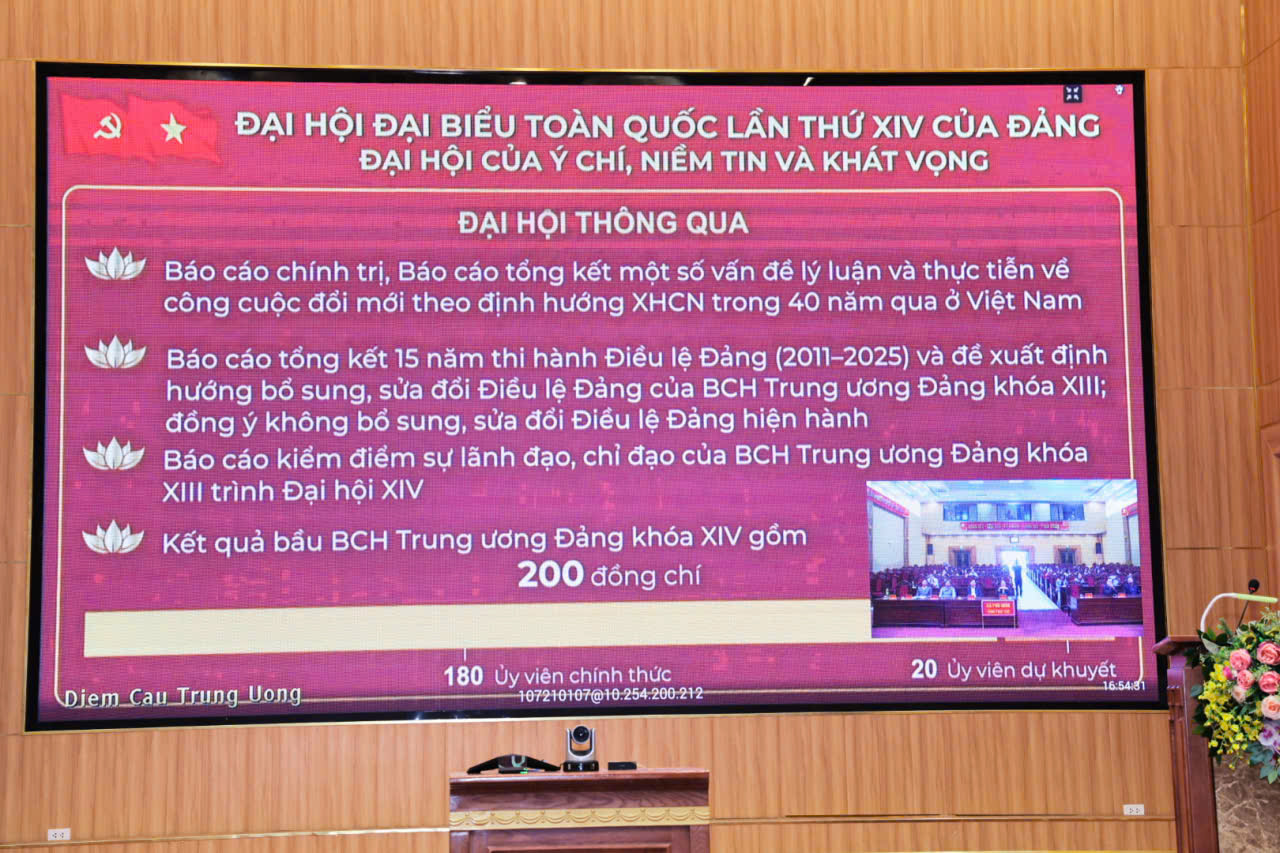Tại hội nghị, các đại biểu đã tập trung lắng nghe, nghiên cứu và tiếp thu những nội dung cốt lõi, những điểm mới quan trọng trong Văn kiện Đại hội đại biểu toàn quốc lần thứ XIV của Đảng. Đây là đợt sinh hoạt chính trị sâu rộng, có ý nghĩa đặc biệt quan trọng, góp phần thống nhất nhận thức và hành động trong toàn Đảng bộ và Nhân dân.