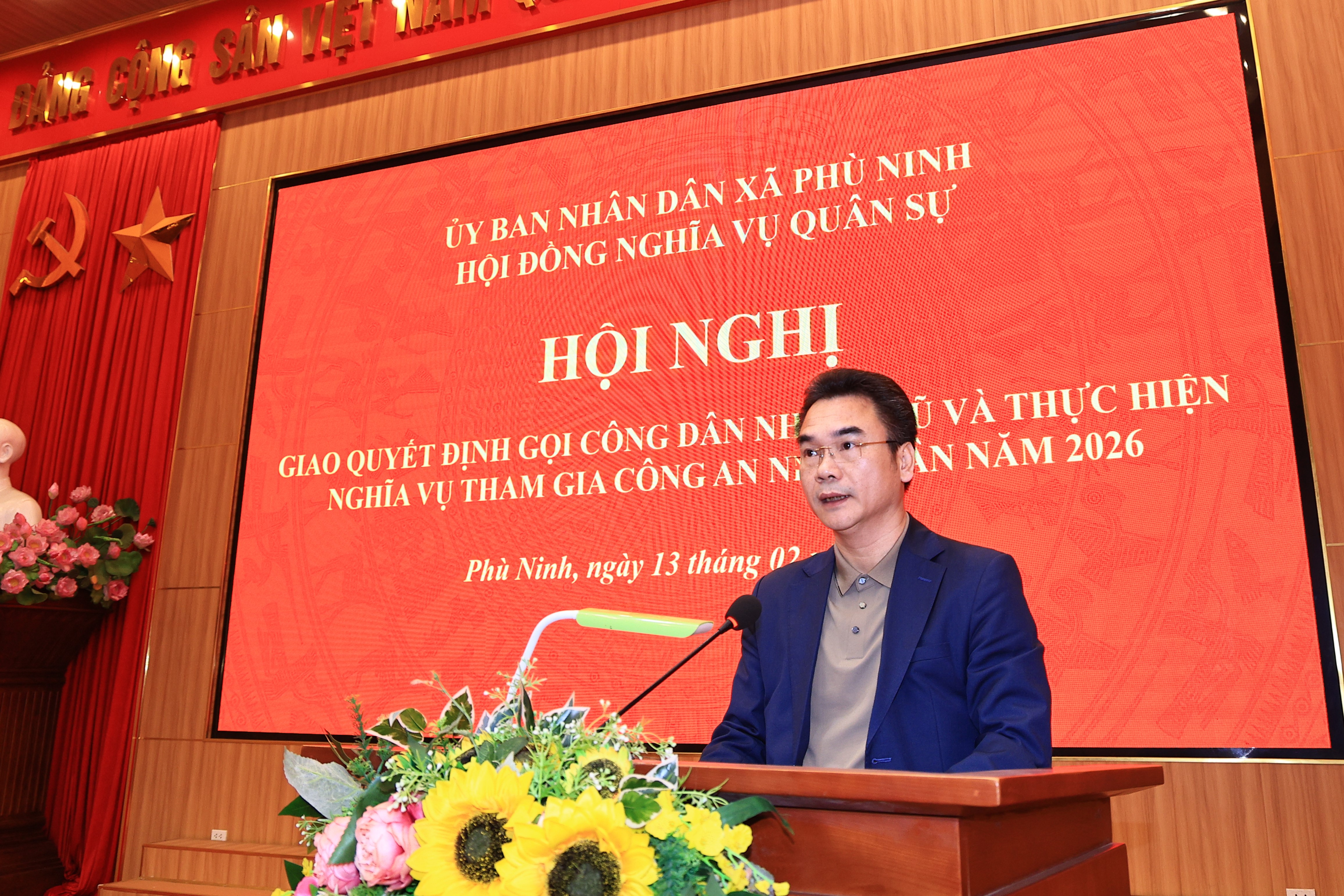 Phát biểu tại Hội nghị, đồng chí Nguyễn Đức Tài – Phó Bí thư Đảng ủy, Chủ tịch UBND xã Phù Ninh ghi nhận và biểu dương tinh thần trách nhiệm, sự phối hợp chặt chẽ của các cơ quan, đơn vị trong công tác tuyển chọn, gọi công dân nhập ngũ; đồng thời đánh giá cao ý thức chấp hành pháp luật của các thanh niên trúng tuyển và sự quan tâm, đồng hành của các gia đình. Đồng chí nhấn mạnh, thực hiện nghĩa vụ quân sự và nghĩa vụ tham gia Công an nhân dân không chỉ là trách nhiệm mà còn là niềm vinh dự, tự hào của mỗi công dân; mong muốn các thanh niên phát huy truyền thống quê hương Phù Ninh, chấp hành nghiêm kỷ luật, tích cực học tập, rèn luyện, hoàn thành tốt mọi nhiệm vụ được giao. Đồng thời yêu cầu các thanh niên sau khi nhận quyết định phải chấp hành nghiêm lệnh gọi nhập ngũ, giữ gìn sức khỏe, bảo đảm quân số, an toàn nhất là trong dịp Tết Nguyên đán.