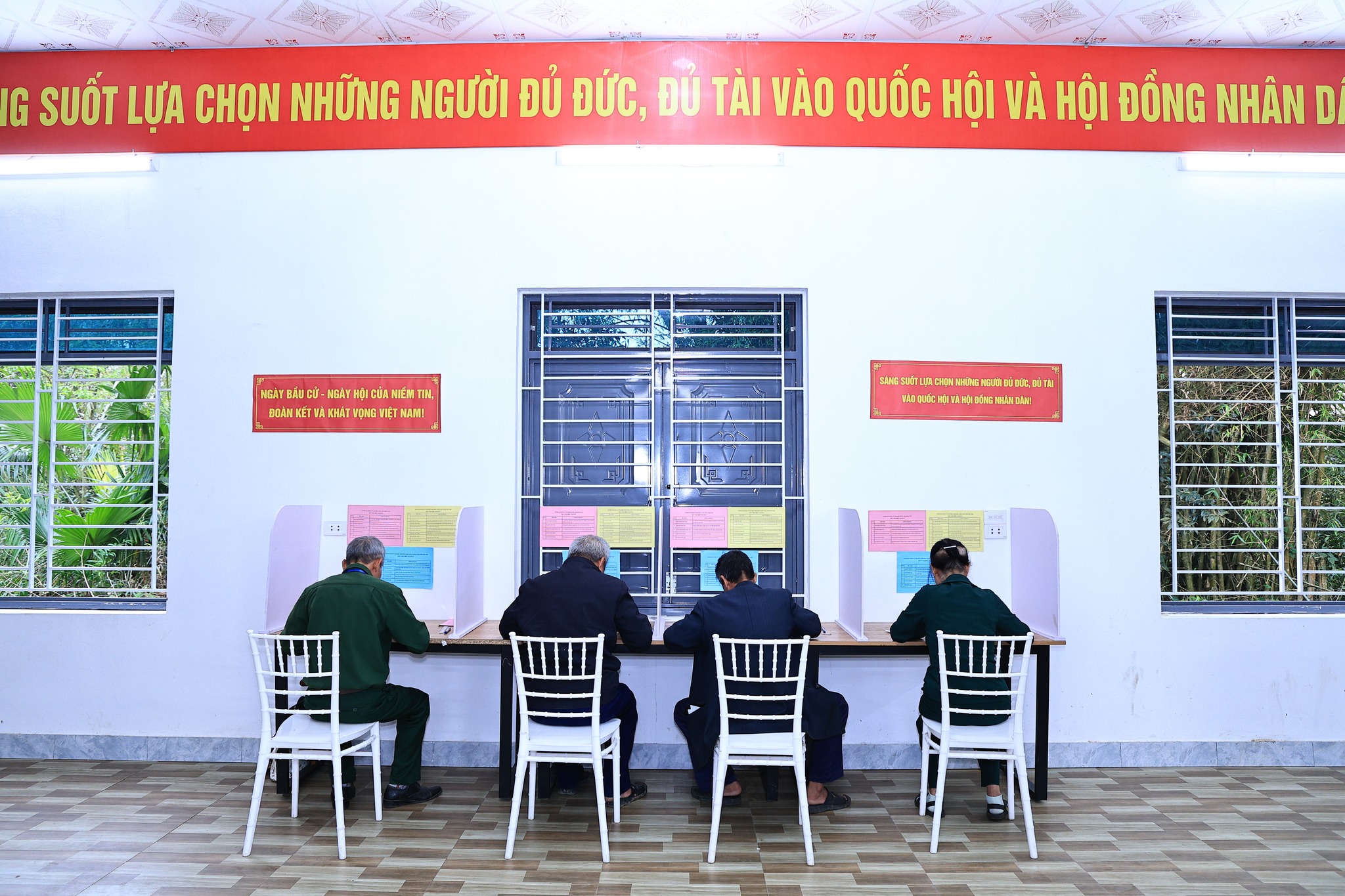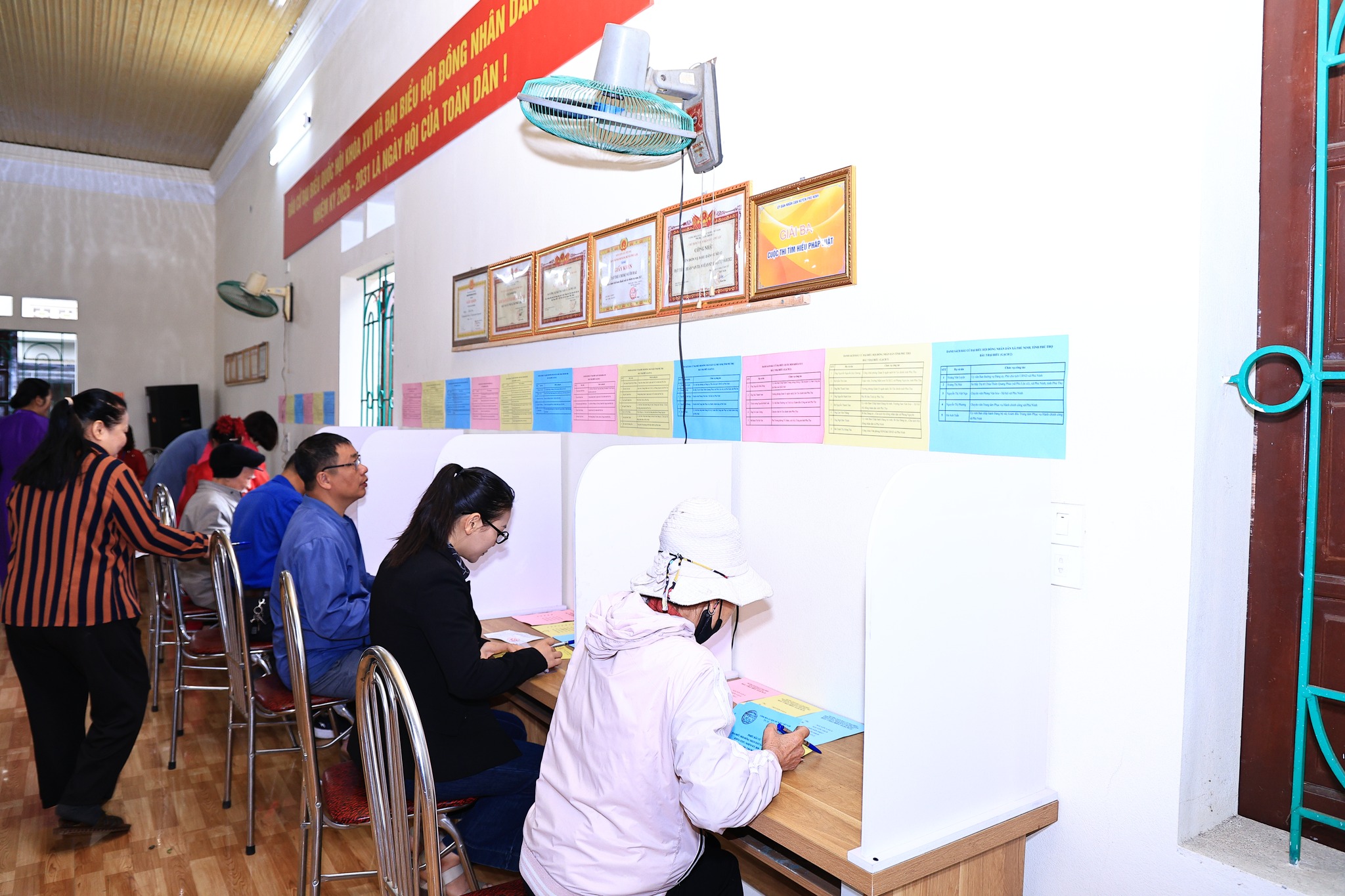 Toàn xã Phù Ninh có 31.765 cử tri tham gia bỏ phiếu tại 16 khu vực bỏ phiếu thuộc 08 đơn vị bầu cử. Tại các điểm bỏ phiếu, danh sách cử tri và tiểu sử tóm tắt của người ứng cử được niêm yết đầy đủ; các tổ bầu cử hướng dẫn cử tri thực hiện các bước bỏ phiếu đúng quy định bầu cử 3 cấp là bầu 03 đại biểu Quốc hội, 05 đại biểu HĐND tỉnh và 24 đại biểu HĐND xã. Các điểm bầu cử được trang trí trang trọng; khu vực bỏ phiếu được bố trí thuận tiện, sạch đẹp, tạo điều kiện để cử tri thực hiện quyền và nghĩa vụ công dân. Xã bố trí 16 hòm phiếu phụ tại các khu vực bỏ phiếu, Các lực lượng phục vụ bầu cử luôn sẵn sàng hỗ trợ cử tri, đặc biệt là người cao tuổi và những cử tri gặp khó khăn trong việc đi lại, bảo đảm mọi công dân đủ điều kiện đều có thể tham gia bỏ phiếu.